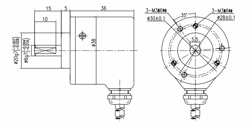 外形尺寸:實心軸;30mm